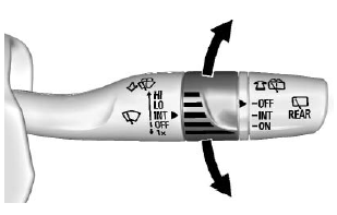 INT : Move the lever up to INT for intermittent wipes, then turn the band up for more frequent wipes or down for less frequent wipes.